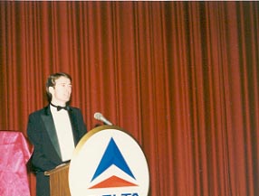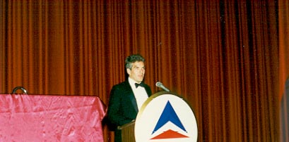 at the podium.