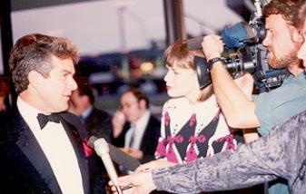 talks with the TV news crew.