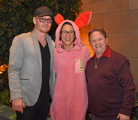 .Zack and Scott posing with the pink bunny costumed fan. |