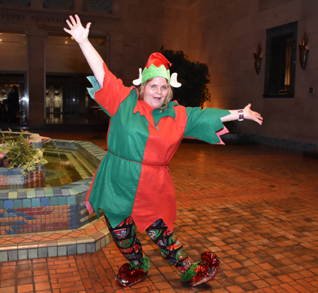 Karla James came in her own Santa's helper clothes. |