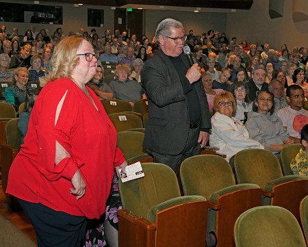Kleveland takes questions from the audience, this one from
