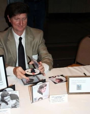 .Classic film fan and radio host from Oregon, Sonny Starr, with copies of his radio shows.