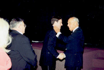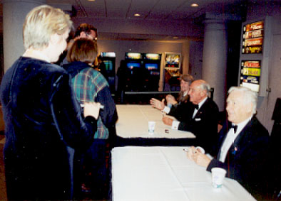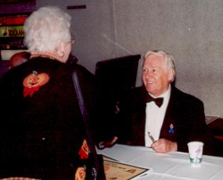 Alan Young is greeted by an
