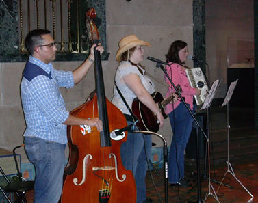 music trio the Black Squirrels performs for the audience.