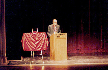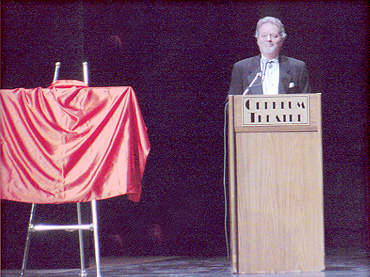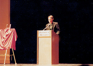 podium, about to introduce the guests.
