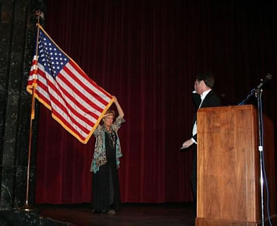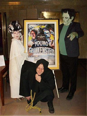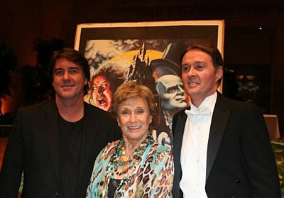 George Englund Jr. and Cloris and Bruce pose in front of the 3 sheet poster.